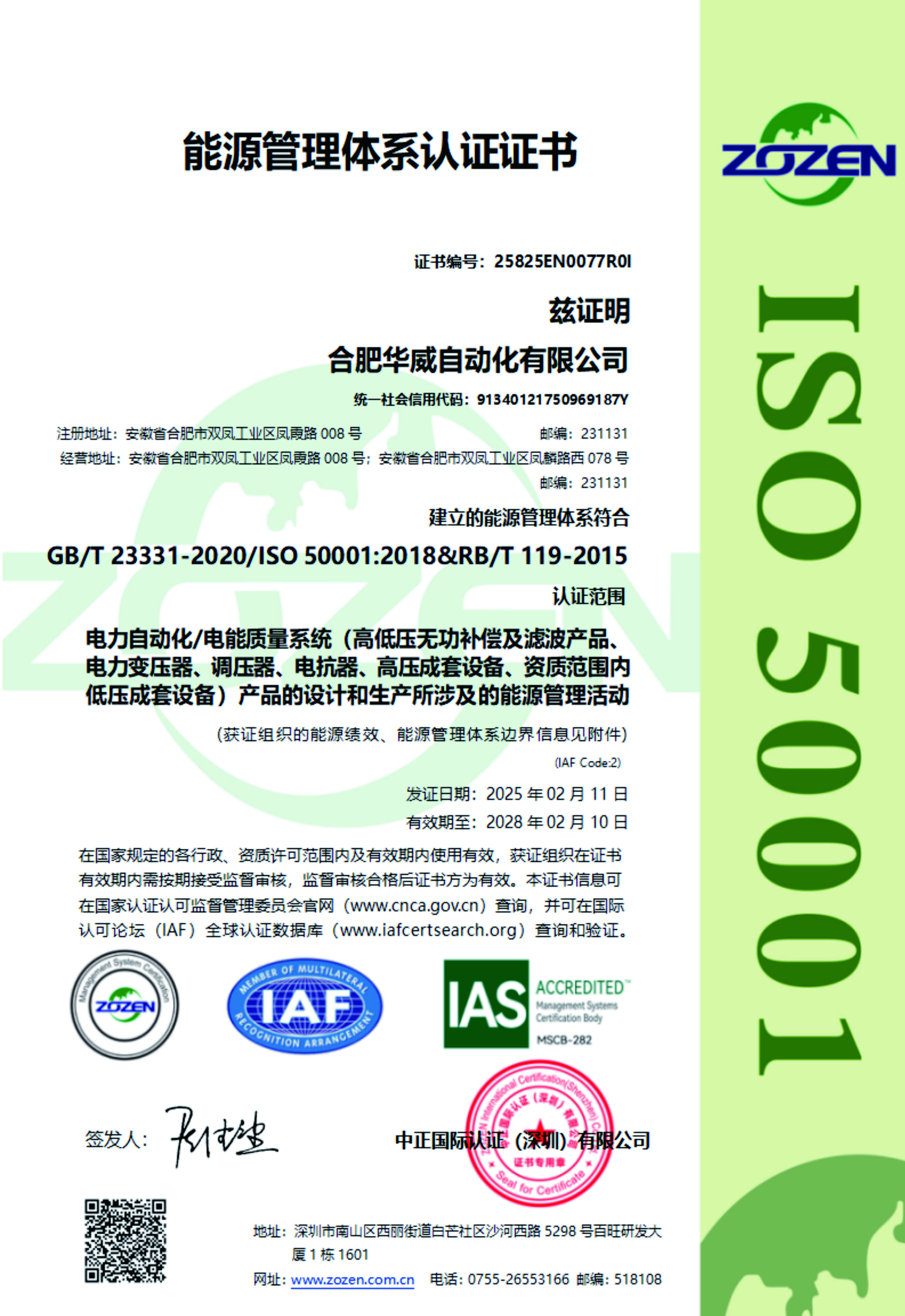 能源管理體系認(rèn)證證書