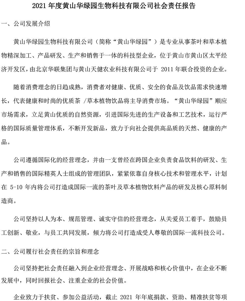 2021年度黃山華綠園生物科技有限公司社會(huì)責(zé)任報(bào)告